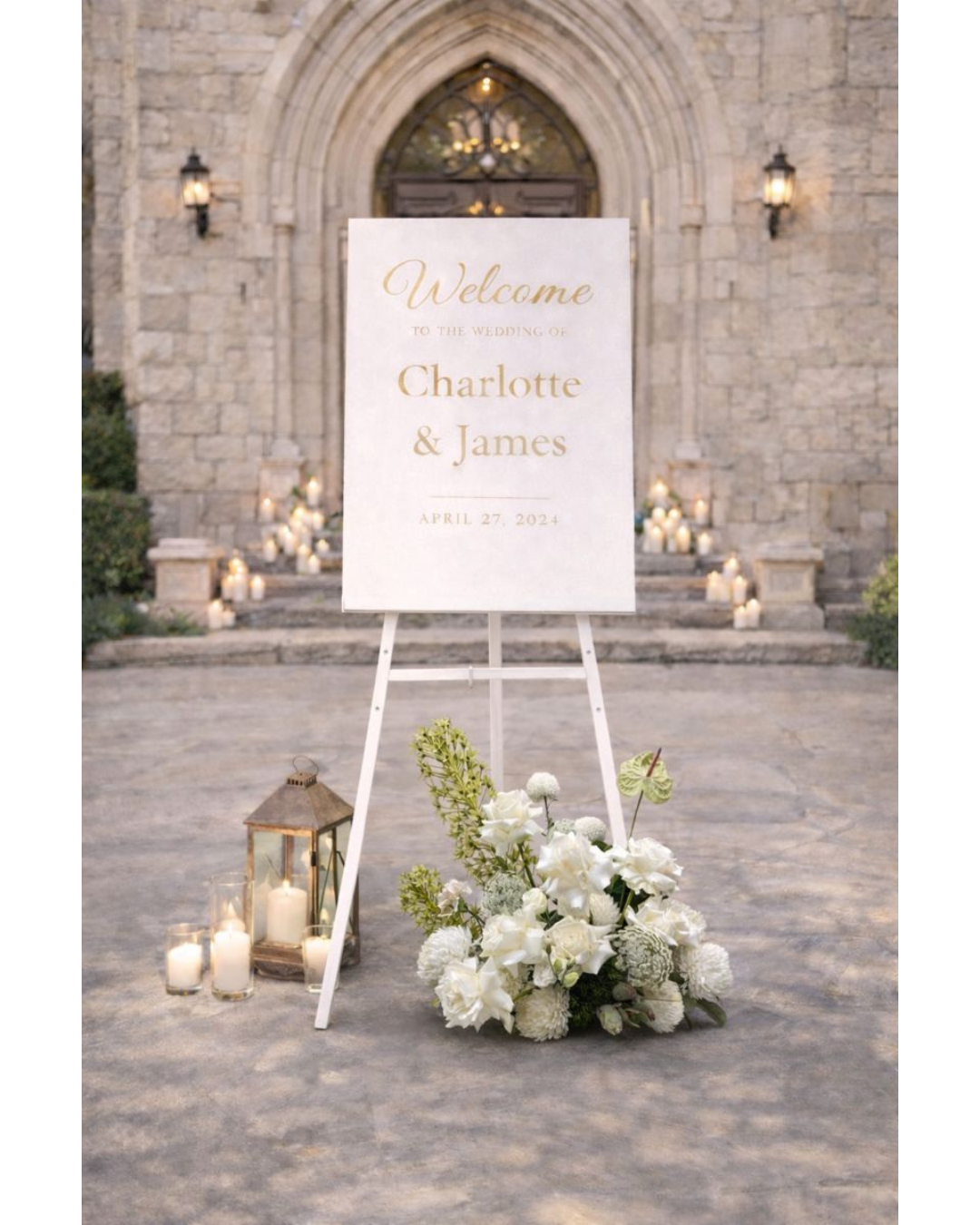 Our small flower sign arrangement is a charming display of fresh, seasonal blooms, beautifully arranged to add a pop of color to any space. Perfect for additional flowers to your entrance sign, making it a delightful accent for your wedding.
