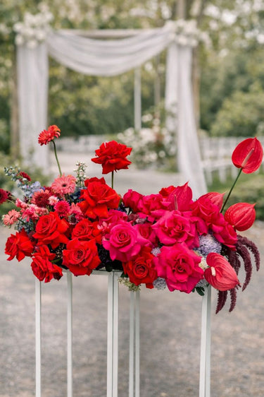 Bright -A romantic theme for the couple that wants a pop of colour added to their day. This theme features soft pinks and bold reds, mixed with lush greenery.